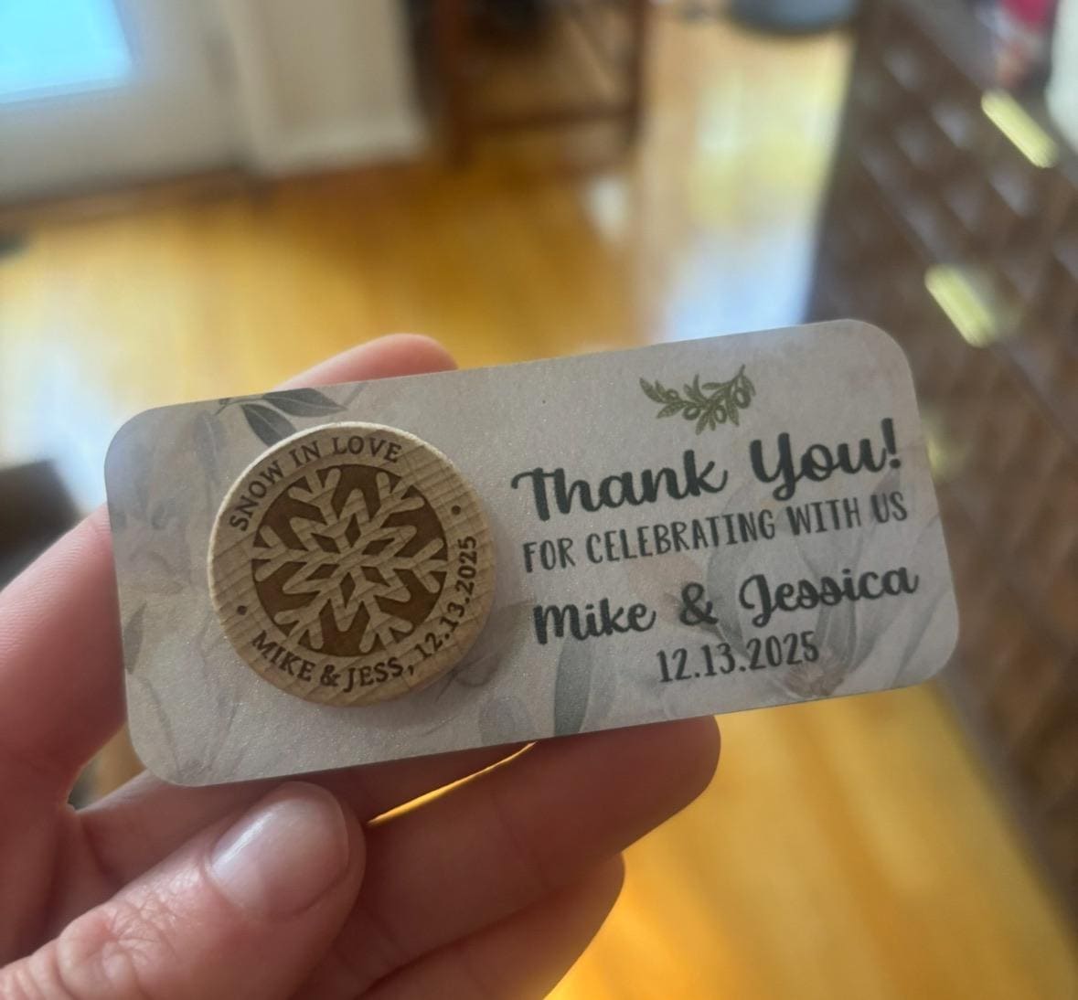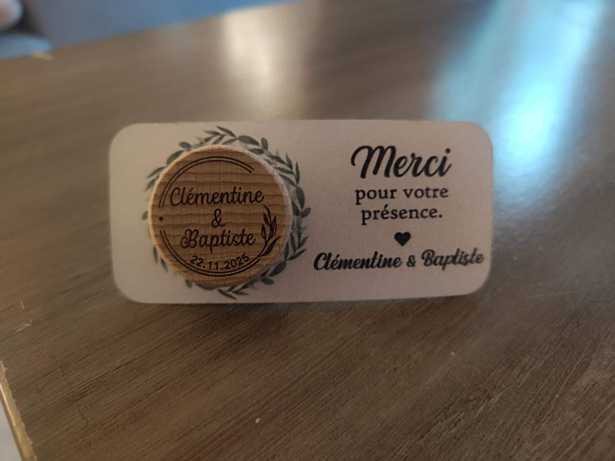 They are made in natural wood from sustainable plantations, and natural high quality cork from Portugal (not agglomerate cork, not colmated cork) only natural high quality cork. The wooden capsule is sanded and then the 2 pieces are glued together. then they are engraved with a laser, this way the image will be perfect, and not be will erase with the time. The Thank You Card Stand is made of 300g Pearlescent Cardstock
