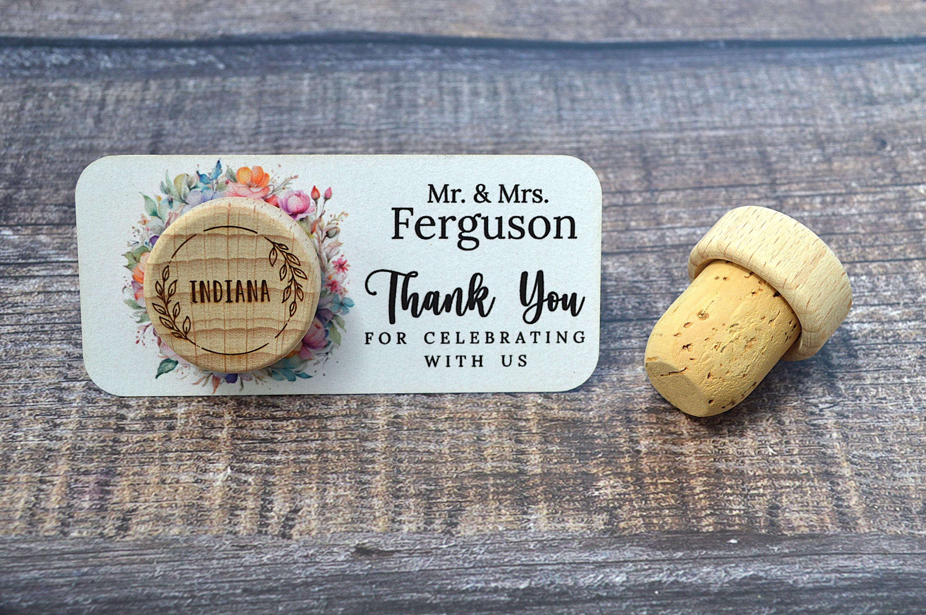 Add a touch of elegance to your wedding celebration with these beautifully crafted Wine Stoppers Wedding Favors for place cards. Each wine stopper comes with a charming thank you card stand, making it a perfect keepsake for your guests. They are also very practical and useful, so your guests will surely put them to good use at home. Whether you're looking for a gift for your guests, or want to add an elegant touch to your reception table, these wine stoppers are the perfect choice for any wedding. Each wine stopper is made with high quality materials, ensuring durability and freshness. In addition, their high-quality design features a variety of classic wedding elements, such as engagement rings, flowers and hearts, which add a romantic touch to any wine bottle.