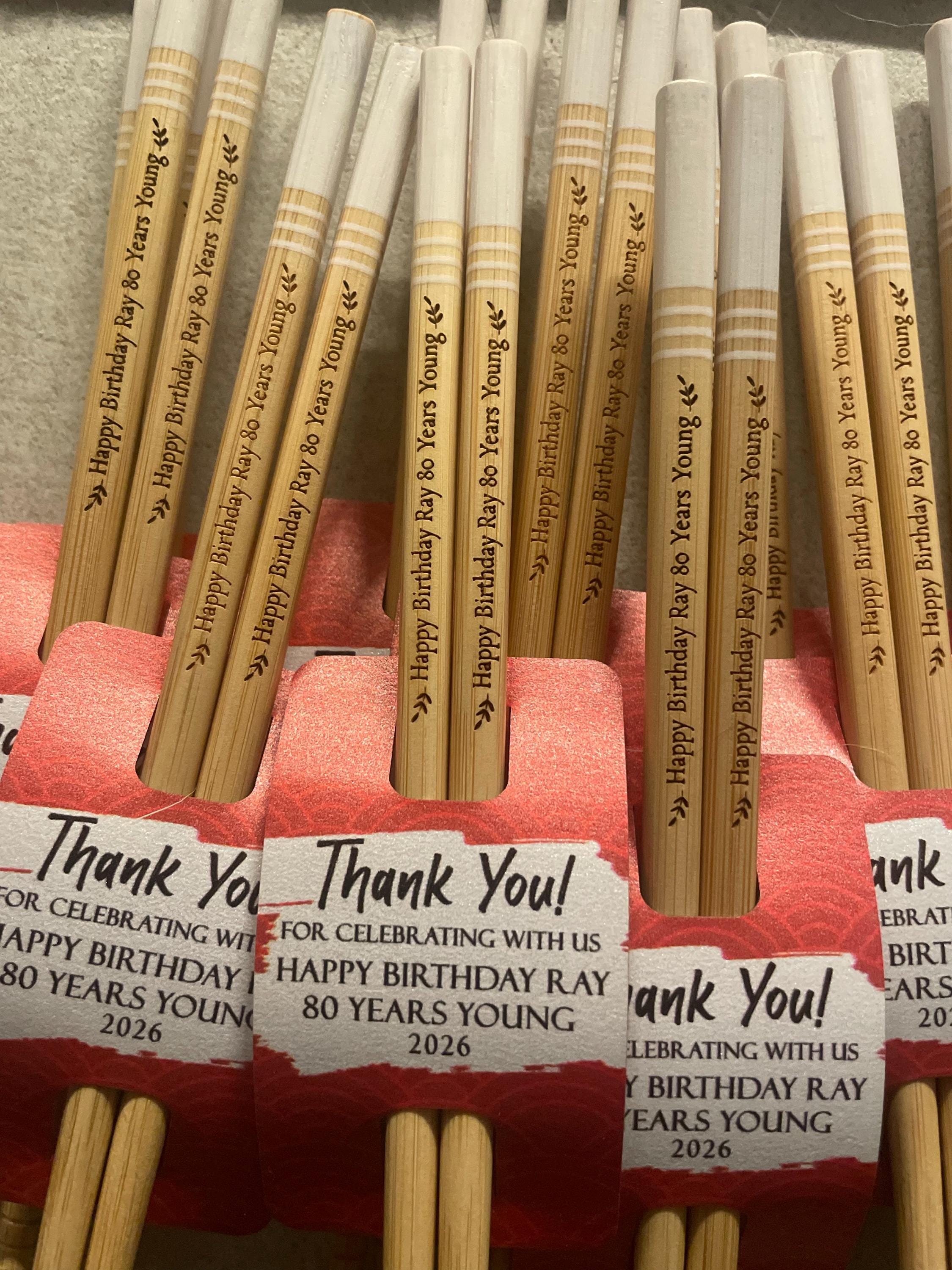 Elegant personalized chopsticks, perfect as wedding favors or special gifts. Engraved with names, dates, or unique messages, these chopsticks add a personal and sophisticated touch to any celebration. Ideal for weddings, anniversaries, and special events, they are a memorable and functional keepsake for your guests. Made from high-quality materials with a refined design, these chopsticks blend tradition with modern style. Make your occasion unforgettable with this unique and meaningful gift!