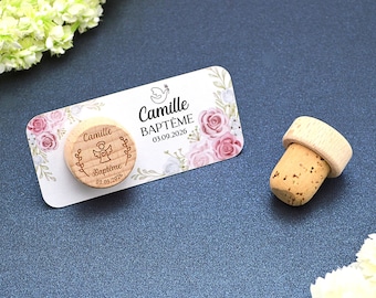 Personalized Baptism Favors: Rustic Cork Magnet, Catholic Christening